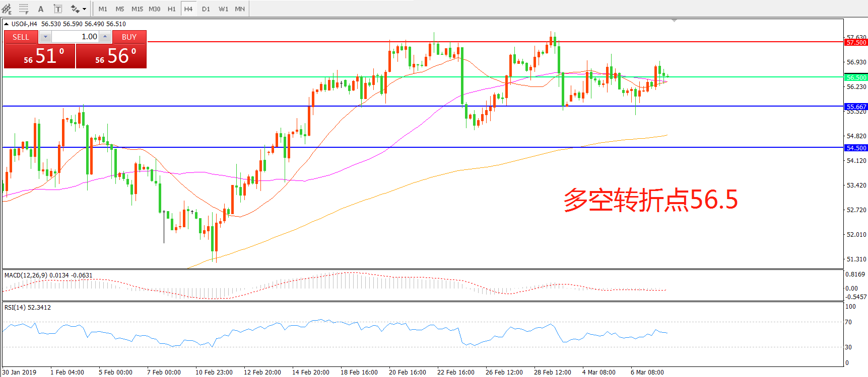 周三(3月7日) 美油WTI在美股盘前最高涨近1%,一度逼近57美元/桶,但随后欧洲央行周四货币立场转向鸽派,导致美元走高,打压风险资产价格,油价由涨转跌。EIA公布数据显示美国精炼油和汽油库存双双减少,抵消了需求面的悲观情绪。最终美国WTI原油周四收涨0.44美元,报56.66美元/桶。