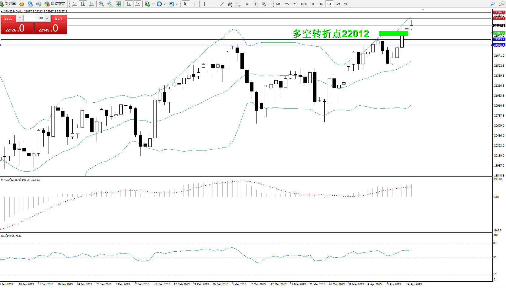 日本股市日经指数和东证股价指数周一双双升至四个月高位,日经指数N225 收盘上扬1.37%22,169.11点,稍早触及124日以来最高位22,211.03点。日本股市长期以来落后全球其他股市,但终于开始追赶上来了,美中贸易紧张关系的忧心已缓和,美联储停止升息,英国退欧推迟,这些都利好风险资产,为海外投资者开始再度买进被低估的日本股票铺路。