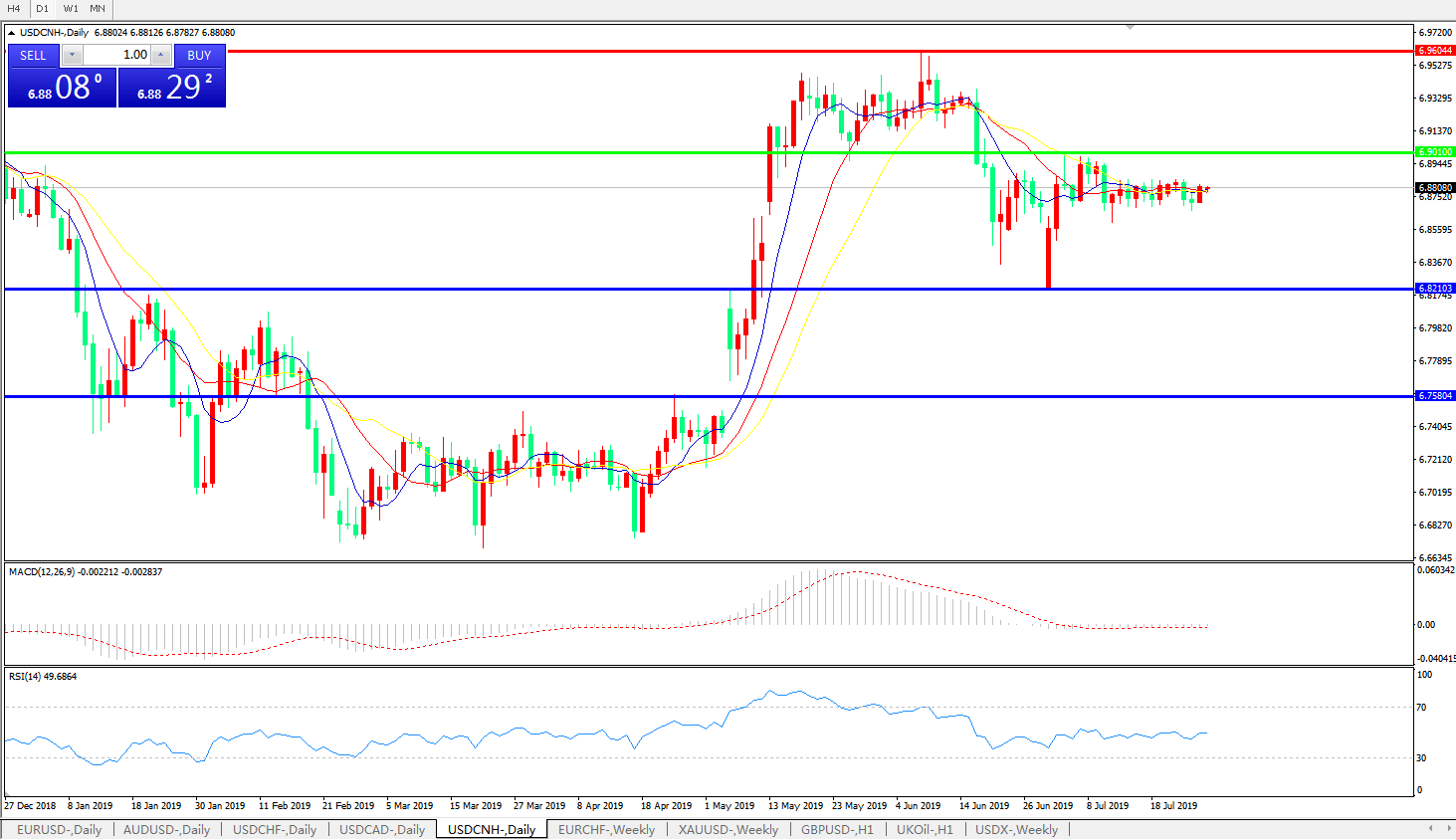 技术面简析:日图均线有发散下行迹象,MACD徘徊在0轴附近且动能柱无明显倾向,RSI维持震荡,行情维持整理态势,预计短期汇价将继续整理或向下修正,中期关注6.9010附近多空转折区域压制是否有效及中美贸易谈判最新进展。