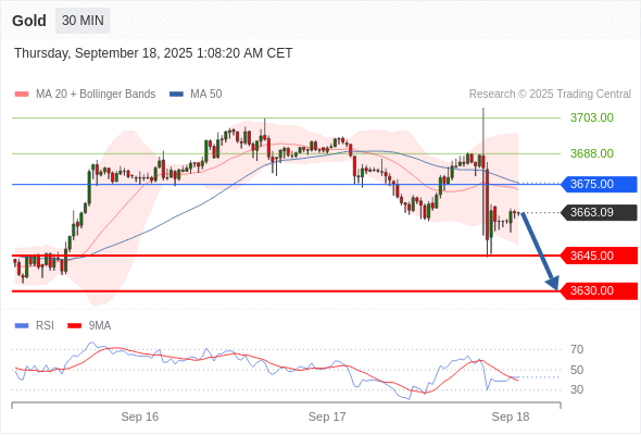 交易策略: 在 3675.00 之下,看跌,目标价位为 3645.00 ,然后为 3630.00 。