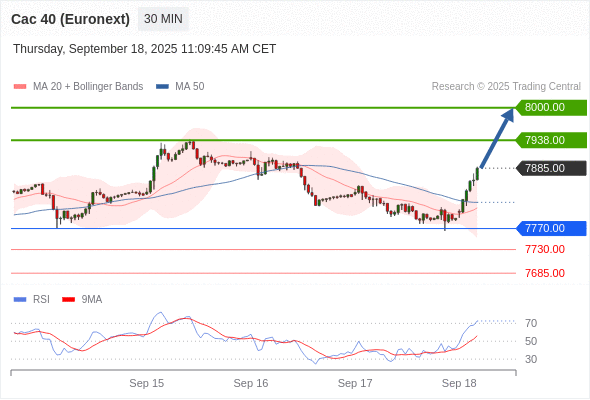 在 7770.00 之上,看涨,目标价位为 7938.00 ,然后为 8000.00 。