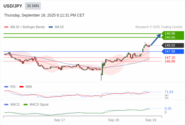 首页 > > 美元/日元 当日内 : 看涨,当 147.58 为支撑位。