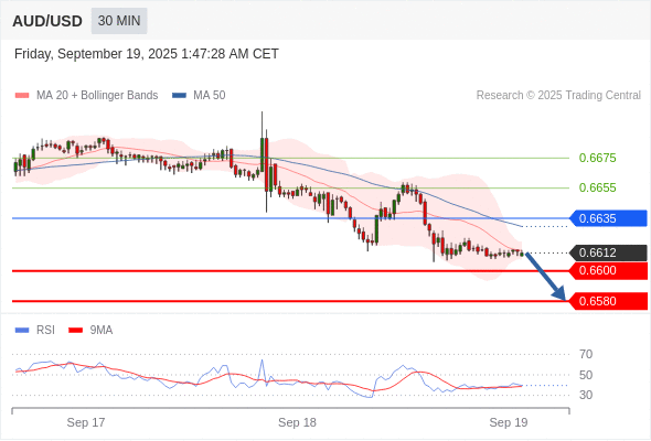 交易策略: 在 0.6635 之下,看跌,目标价位为 0.6600 ,然后为 0.6580 。