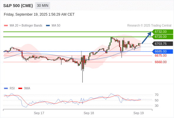交易策略: 在 6685.00 之上,看涨,目标价位为 6720.00 ,然后为 6732.00 。
