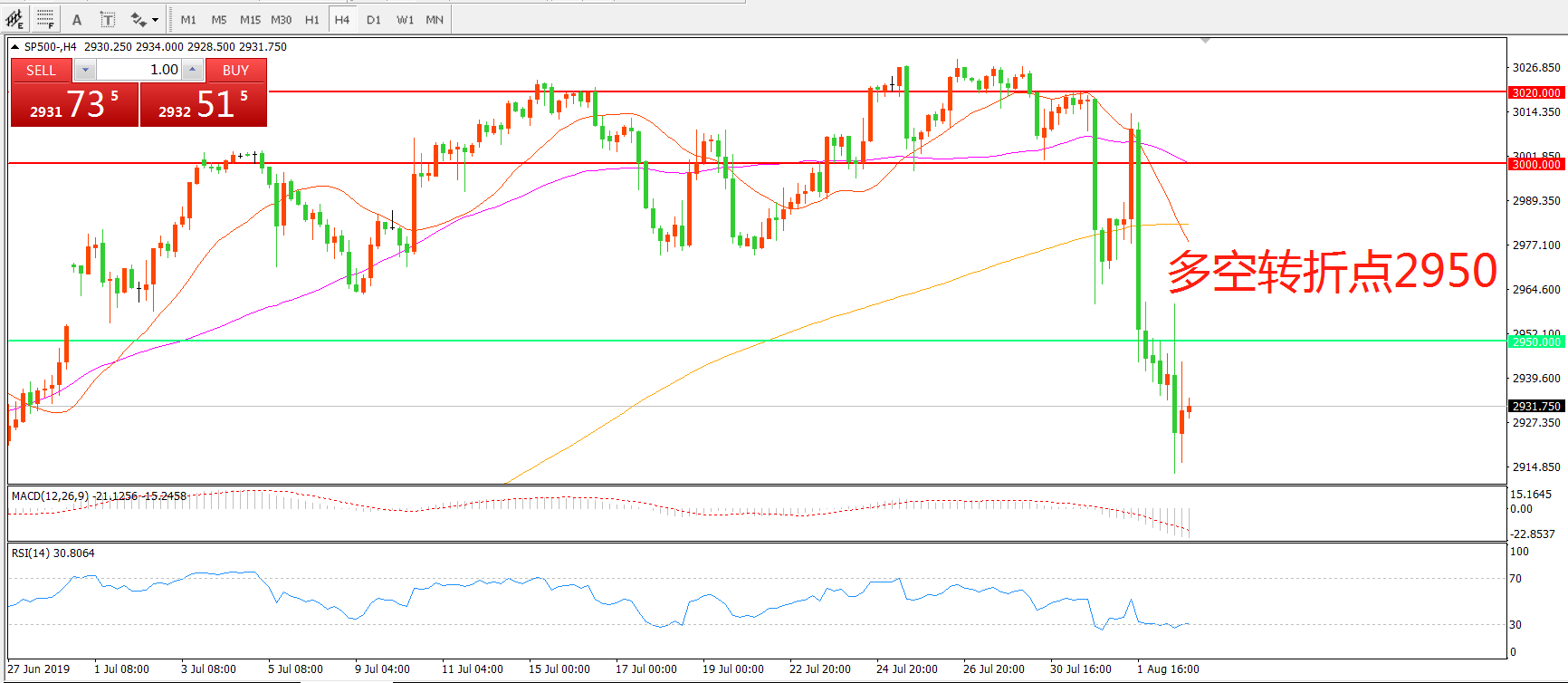 由于财政刺激效应减退,最新公布的美国7月新增非农就业人数不及预期。美股在科技股拖累下集体收跌,标普500震荡收跌,最终收报2931.75点。自特朗普发推威胁对中国增加关税后,美股已经连续两日下跌并创下多年来最大周跌幅。