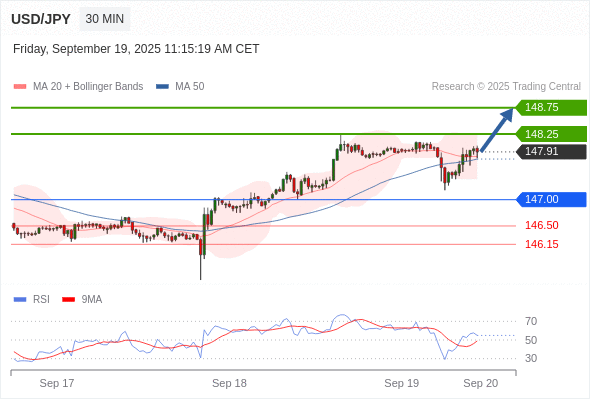 在 147.00 之上,看涨,目标价位为 148.25 ,然后为 148.75 。