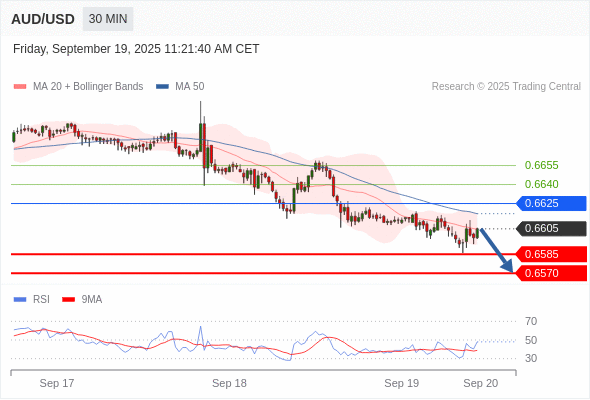 在 0.6625 之下,看跌,目标价位为 0.6585 ,然后为 0.6570 。