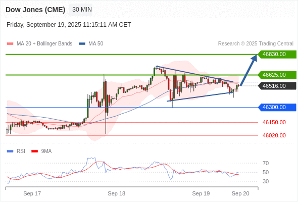 在 46300.00 之上,看涨,目标价位为 46625.00 ,然后为 46830.00 。