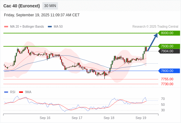 在 7800.00 之上,看涨,目标价位为 7930.00 ,然后为 8000.00 。