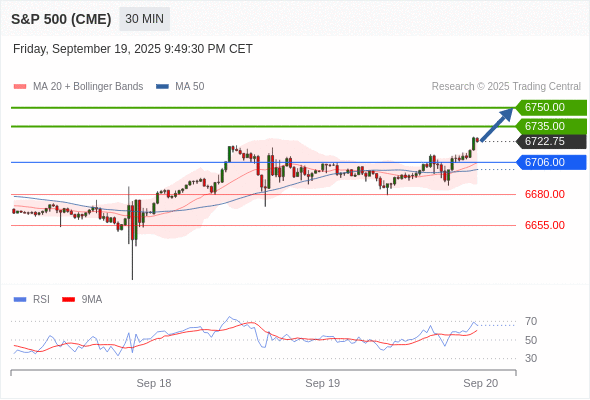 在 6706.00 之上,看涨,目标价位为 6735.00 ,然后为 6750.00 。