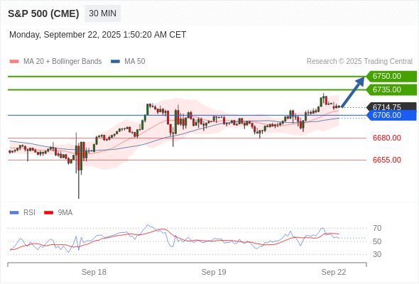 在 6706.00 之上,看涨,目标价位为 6735.00 ,然后为 6750.00 。