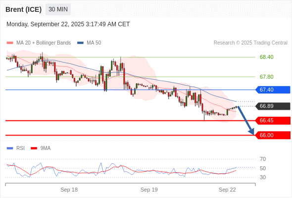 在 67.40 之下,看跌,目标价位为 66.45 ,然后为 66.00 。