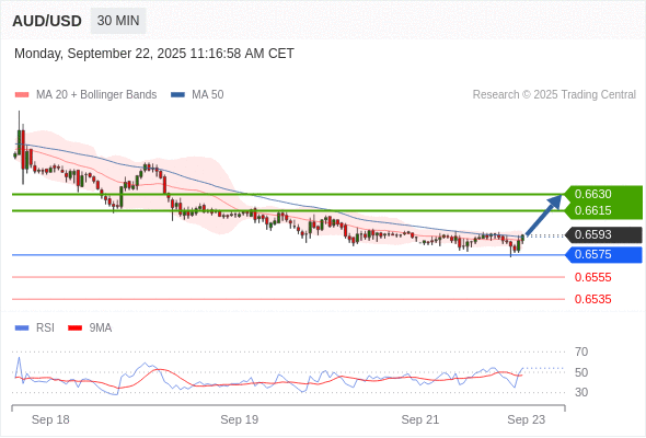 在 0.6575 之上,看涨,目标价位为 0.6615 ,然后为 0.6630 。