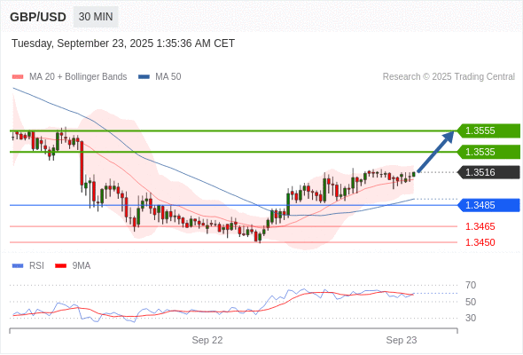 在 1.3485 之上,看涨,目标价位为 1.3535 ,然后为 1.3555 。