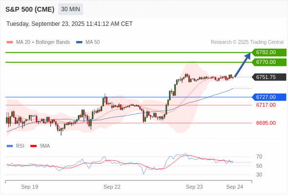 交易策略: 在 6727.00 之上,看涨,目标价位为 6770.00 ,然后为 6782.00 。