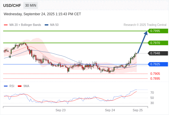 在 0.7925 之上,看涨,目标价位为 0.7970 ,然后为 0.7995 。