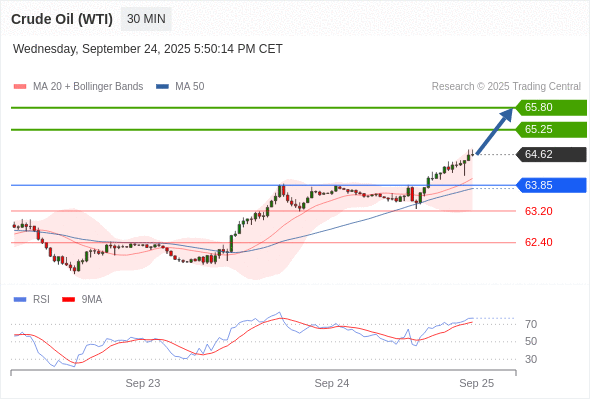在 63.85 之上,看涨,目标价位为 65.25 ,然后为 65.80 。