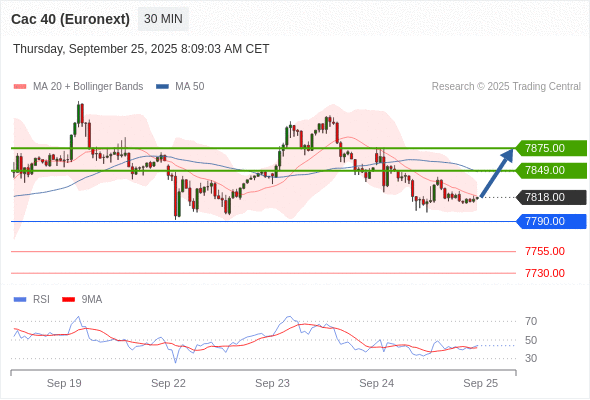 在 7790.00 之上,看涨,目标价位为 7849.00 ,然后为 7875.00 。