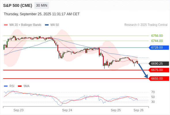 在 6728.00 之下,看跌,目标价位为 6675.00 ,然后为 6655.00 。