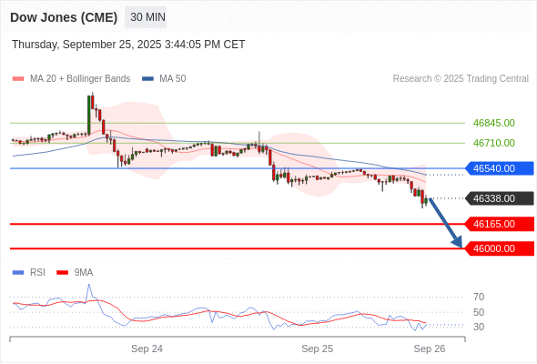 在 46540.00 之下,看跌,目标价位为 46165.00 ,然后为 46000.00 。