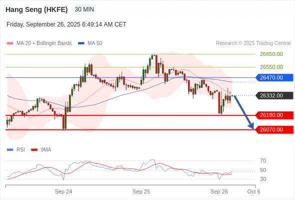 香港恒生指数期货 当日内: 目标位为26070.00。