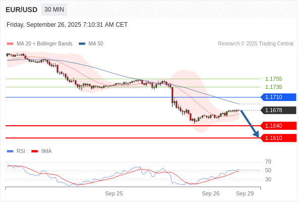 在 1.1710 之下,看跌,目标价位为 1.1640 ,然后为 1.1610 。