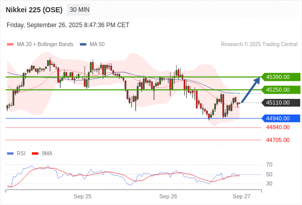 在 44940.00 之上,看涨,目标价位为 45250.00 ,然后为 45390.00 。