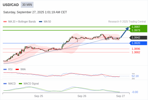 美元/加元 当日内 : 调整至 1.3920 处,在反弹上升之前。