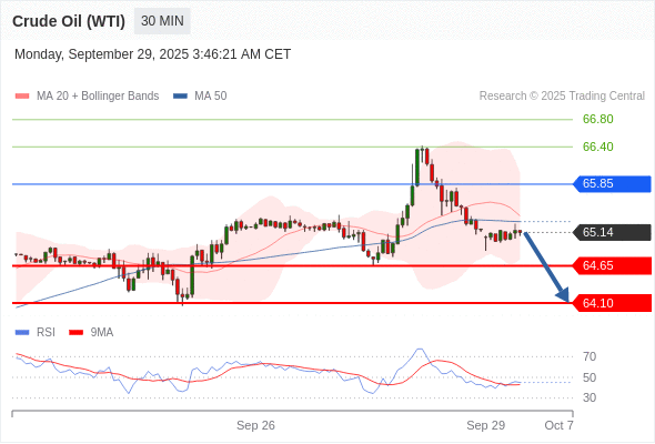 在 65.85 之下,看跌,目标价位为 64.65 ,然后为 64.10 。