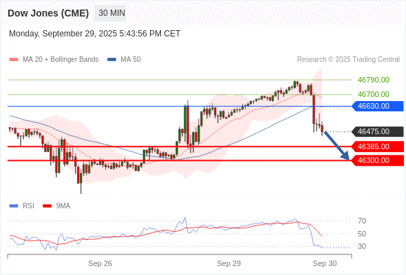 在 46630.00 之下,看跌,目标价位为 46385.00 ,然后为 46300.00 。