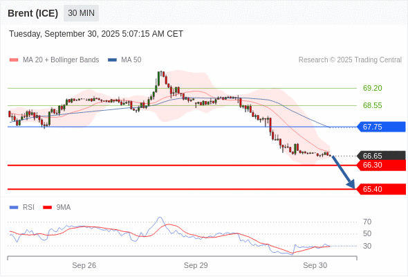 布伦特原油 (ICE) (Z5) 当日内: 目标位为65.40。