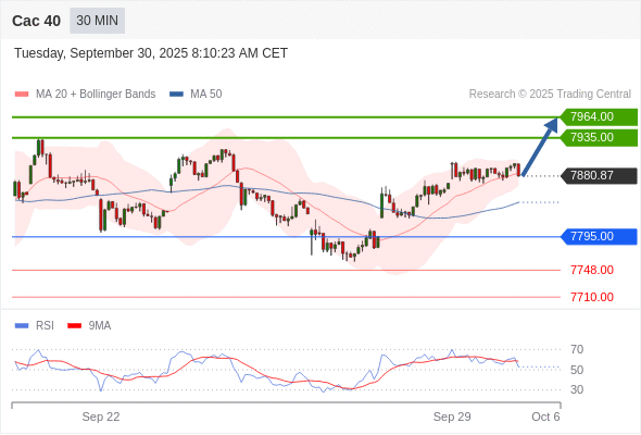 在 7795.00 之上,看涨,目标价位为 7935.00 ,然后为 7964.00 。