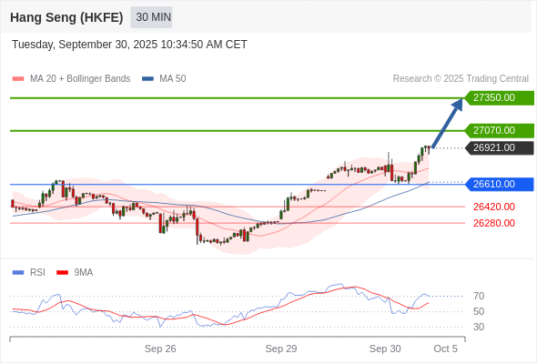 在 26610.00 之上,看涨,目标价位为 27070.00 ,然后为 27350.00 。