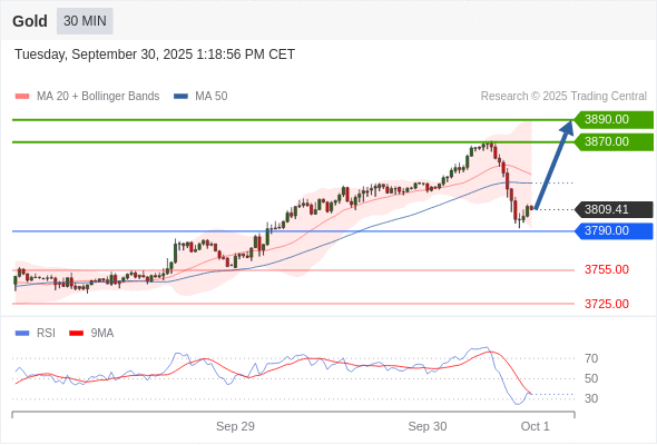 在 3790.00 之上,看涨,目标价位为 3870.00 ,然后为 3890.00 。