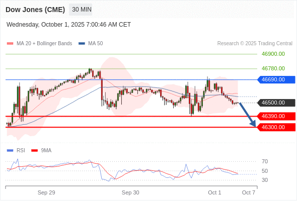 在 46690.00 之下,看跌,目标价位为 46390.00 ,然后为 46300.00 。