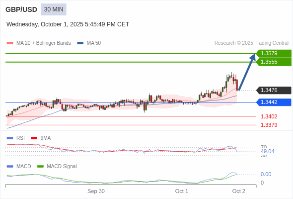 英镑/美元 当日内 : 目标为 1.3579。