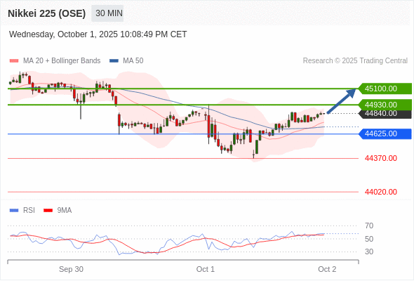 在 44625.00 之上,看涨,目标价位为 44930.00 ,然后为 45100.00 。