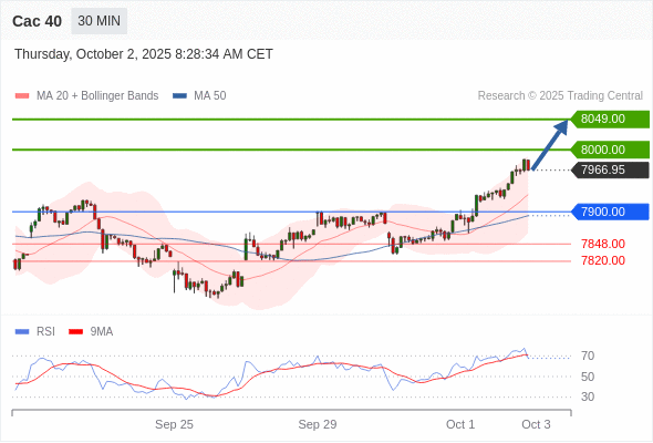 在 7900.00 之上,看涨,目标价位为 8000.00 ,然后为 8049.00 。