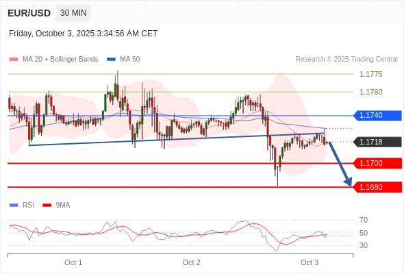 在 1.1740 之下,看跌,目标价位为 1.1700 ,然后为 1.1680 。
