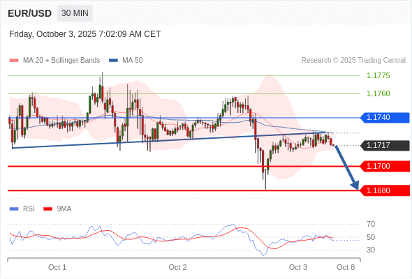 在 1.1740 之下,看跌,目标价位为 1.1700 ,然后为 1.1680 。