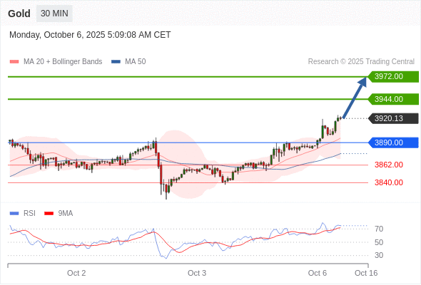 在 3890.00 之上,看涨,目标价位为 3944.00 ,然后为 3972.00 。