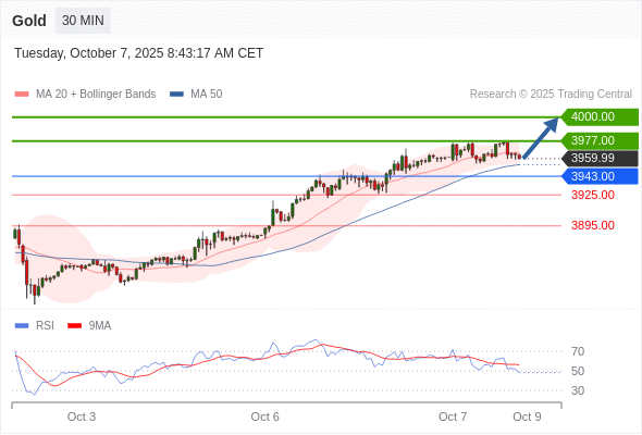 在 3943.00 之上,看涨,目标价位为 3977.00 ,然后为 4000.00 。