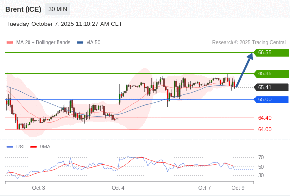 在 65.00 之上,看涨,目标价位为 65.85 ,然后为 66.55 。