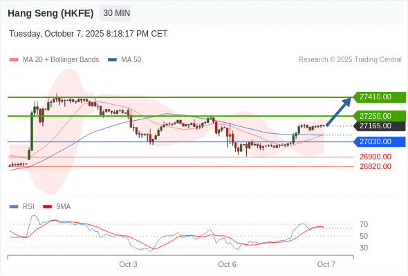 香港恒生指数期货 当日内: 超短线(当日内)支撑位在27030.00附近。