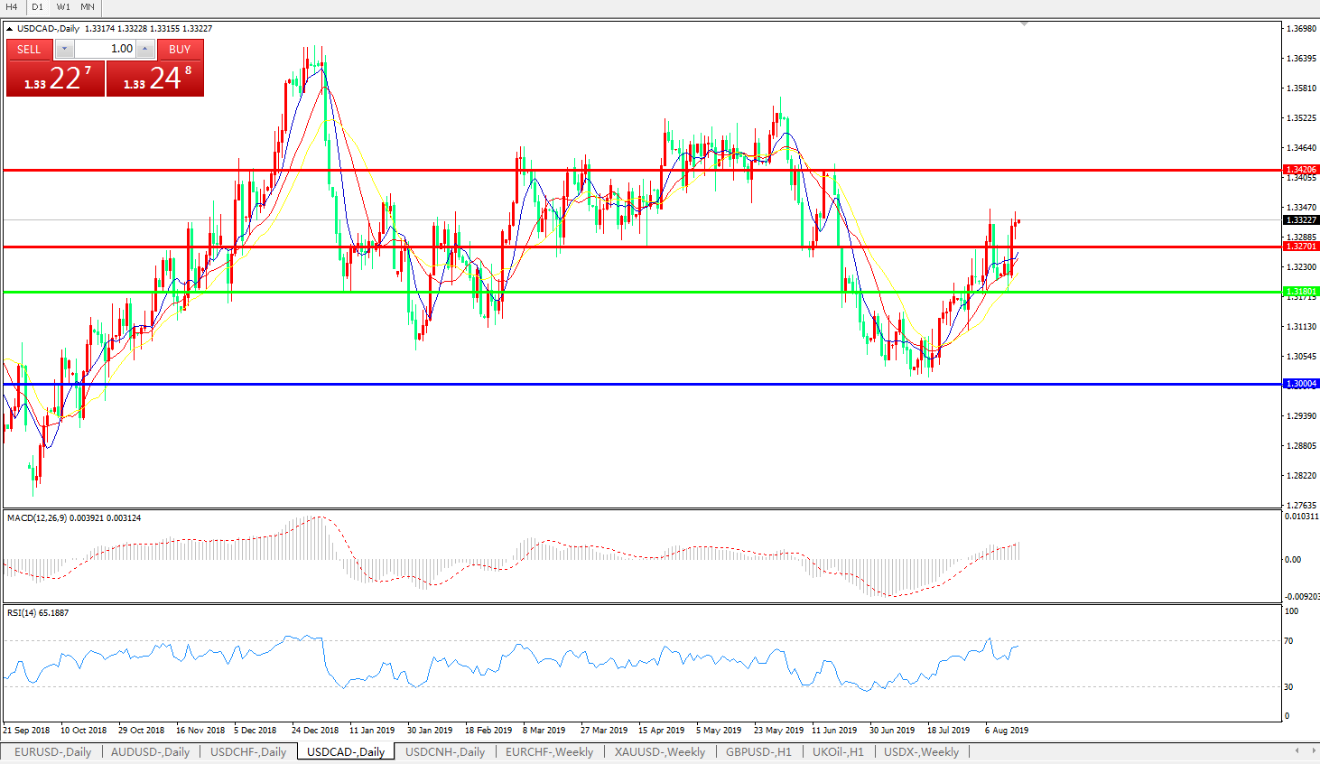 美元兑加元在周四延续涨势,日内最高触及1.3333,创8月7日以来逾一周新高,原因一方面在于美国数据向好叠加避险美元买需共同助推美元指数持稳,另一方面则是因为原油价格继续承压,对产油国货币加元构成了连带拖累;日内备受瞩目的美国零售销售数据表现大幅好于预期,影响改过了加拿大同样向好的ADP就业数据,这推动者美元兑加元延续着过去一个月来的反弹升势。与此同时,国际油价虽然日内几经震荡,但在全球需求阴霾下,总体偏向下行的格局依旧未改。这也连累了加元的走势。