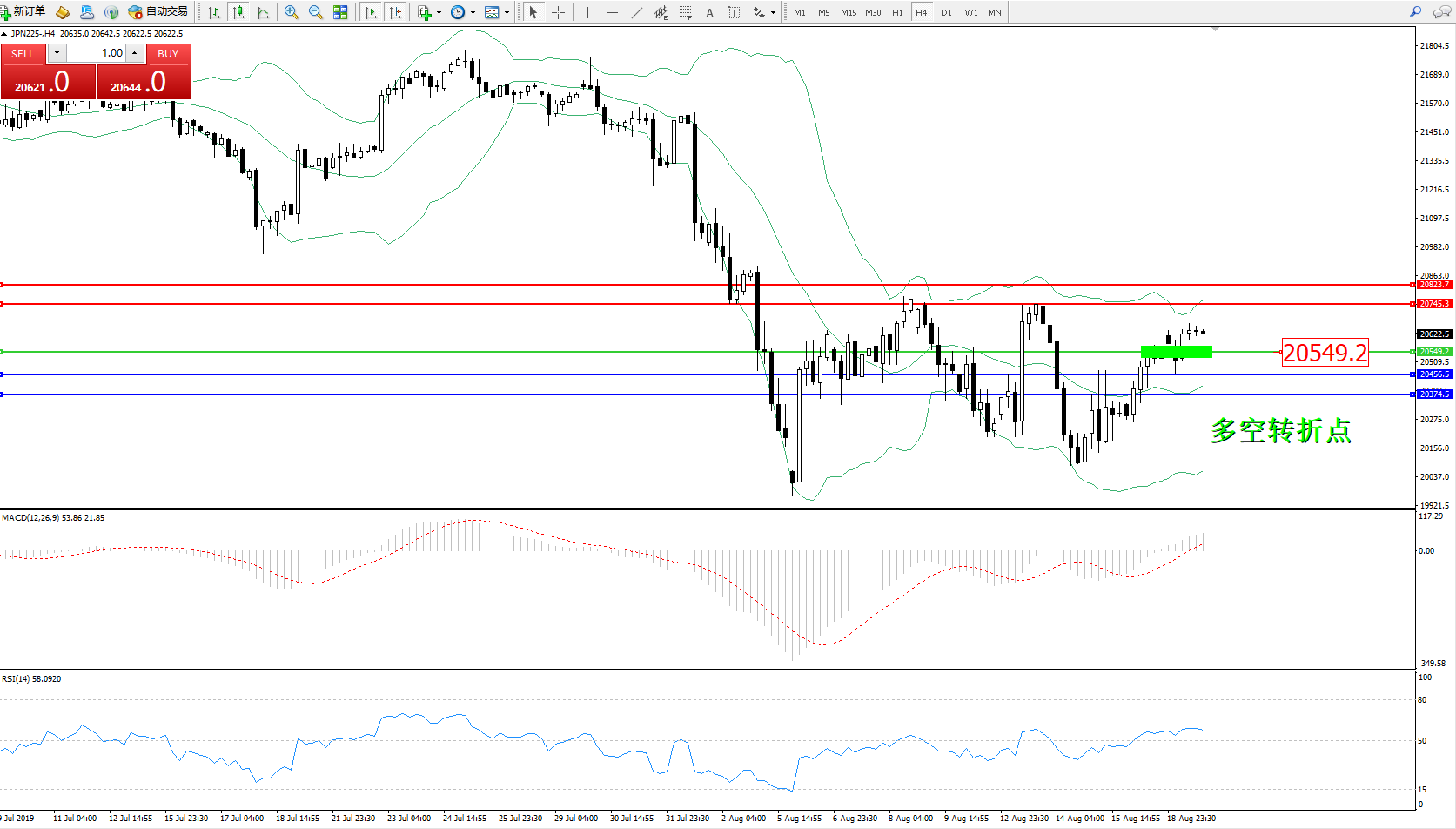 日经225指数8月19日(周一)收盘上涨197.65点,涨幅0.97%,报20566.50点。7月日本对美国出口量上升8.4%,6月日本对美国出口量上升4.9%,7月数据表明日本对美国出口连续10个月上升,日美贸易顺差较上年同期增长15.6%,录得5,794亿日元。日本对美出口持续增长可能会让特朗普不满,据悉,日本首相安倍晋三和美国总统唐纳德特朗普在联合国大会(UNGA)会议期间会晤,美国和日本预计将在9月达成全面贸易协议。