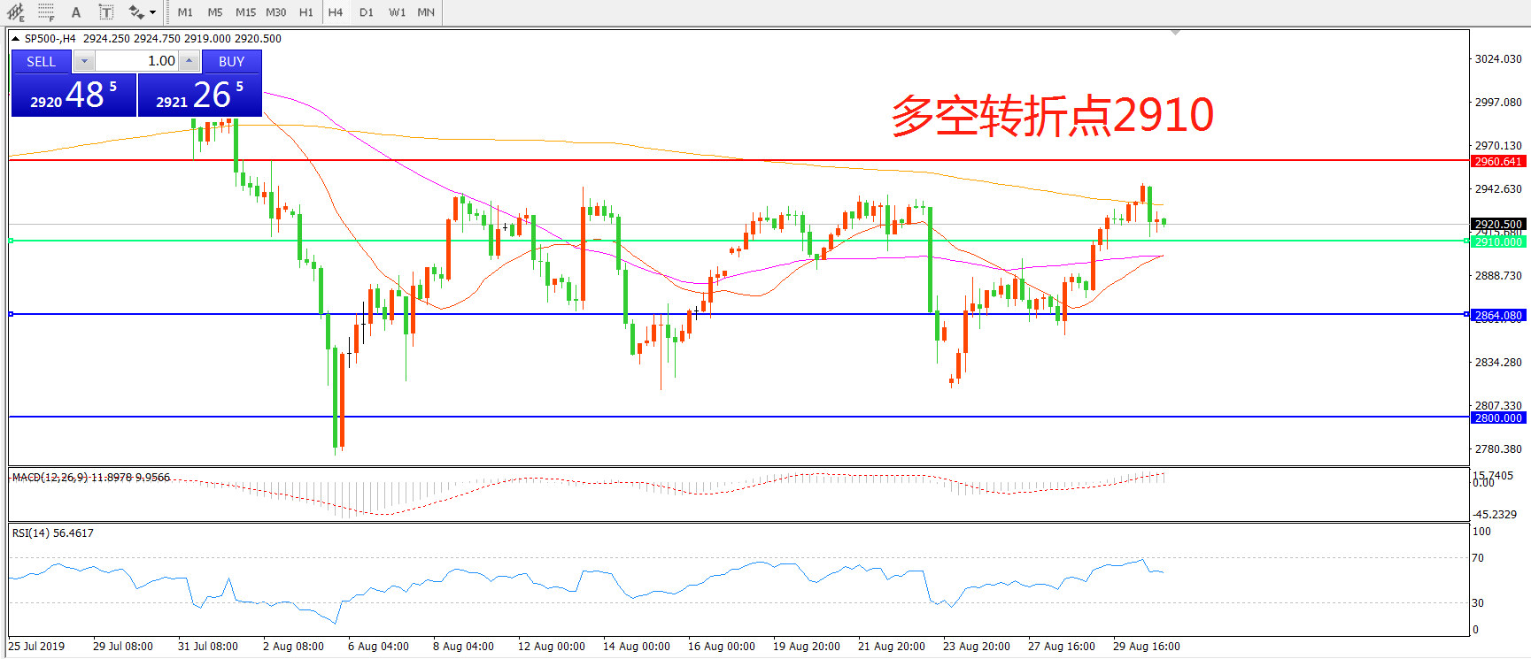 多空转折点:2910.00