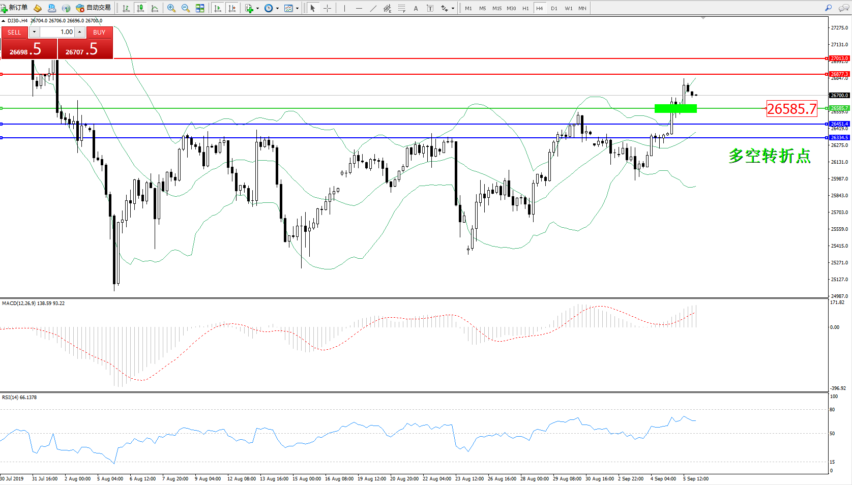 交易策略:26585上方看涨,目标26877、27013