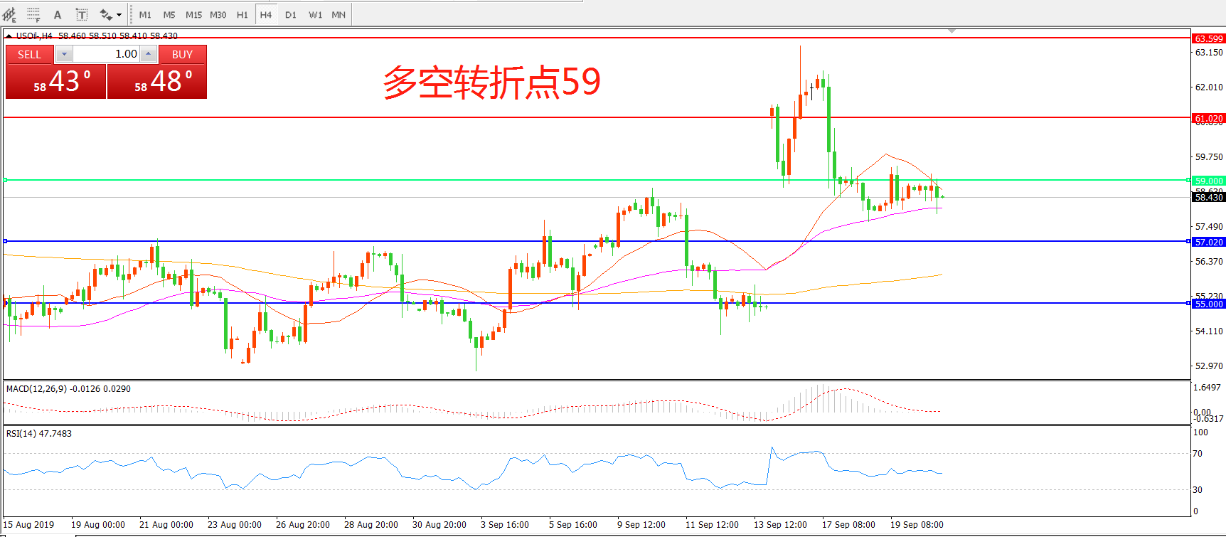 交易策略: 在59.00之下看跌,目标57.00   55.00