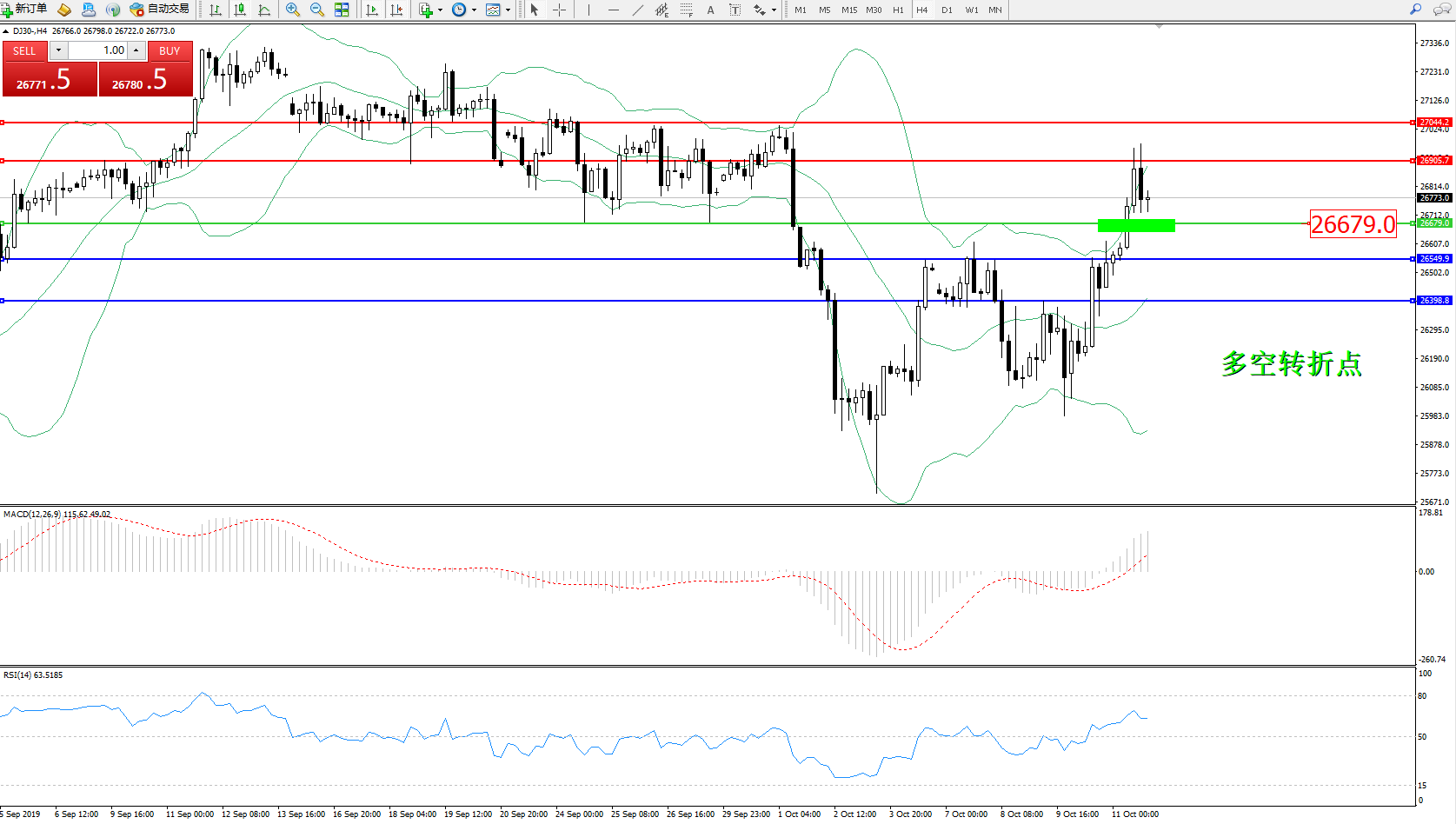 技术点评:多头缓慢震荡延续布林带指标上轨不断上移中,且行情正处于前期震荡整理区域进行徘徊走势,多头出现短暂乏力后整理,MACD指标多头区域维持缓慢上行中,RSI指标处于多头区域维持震荡走势;